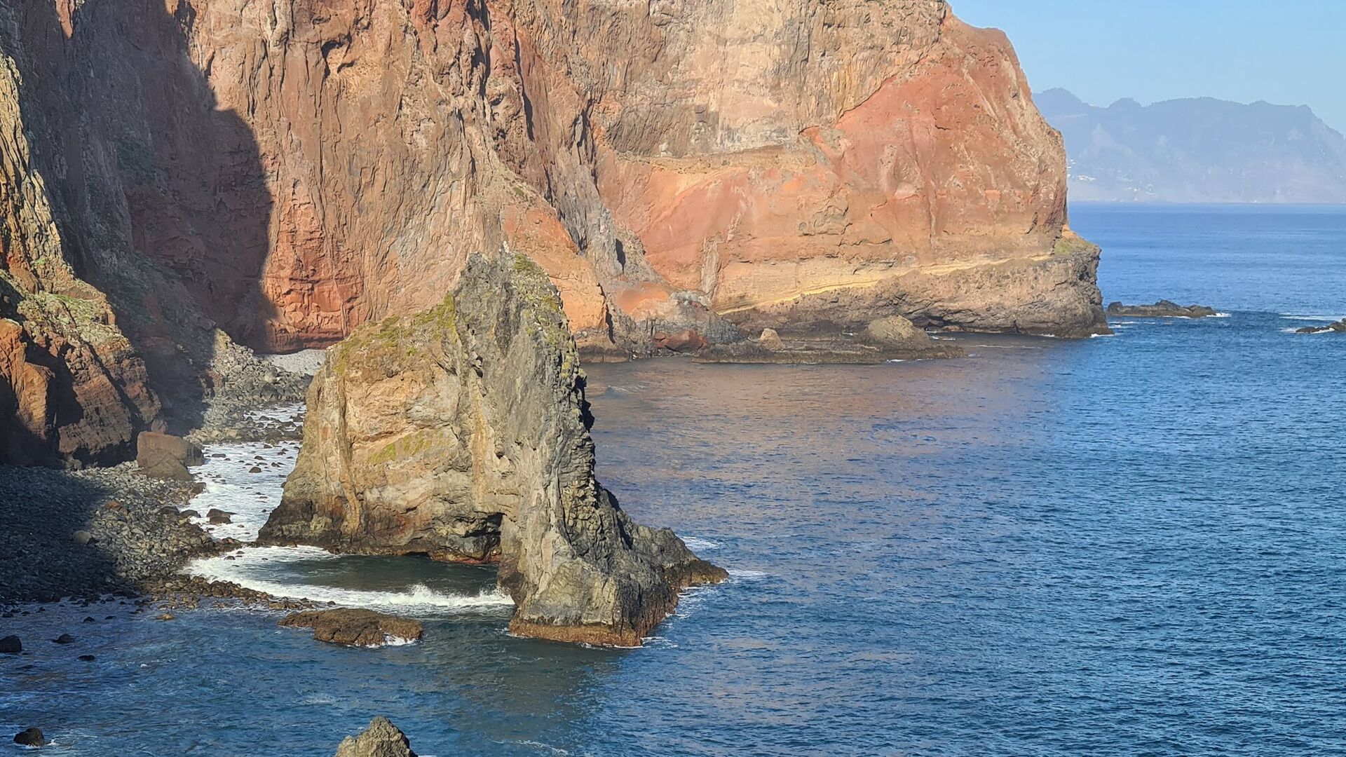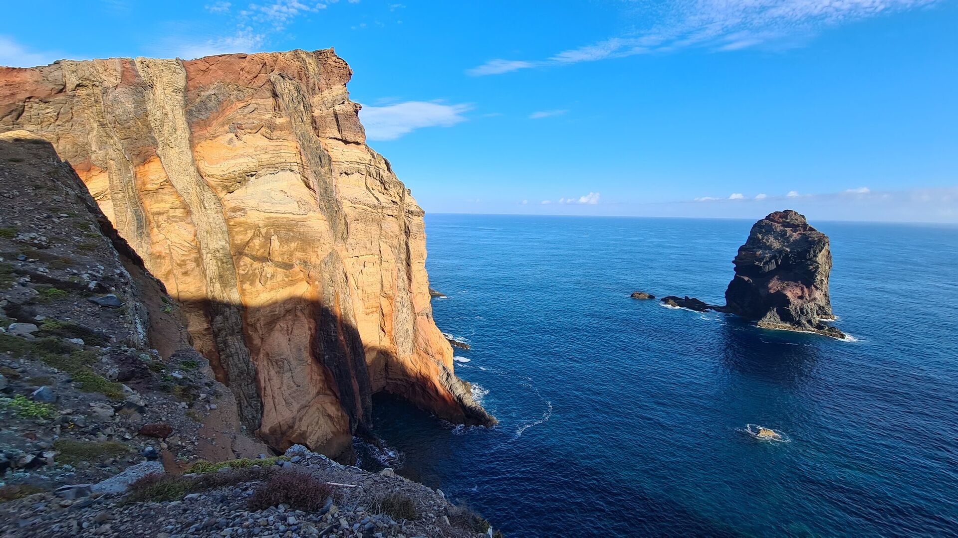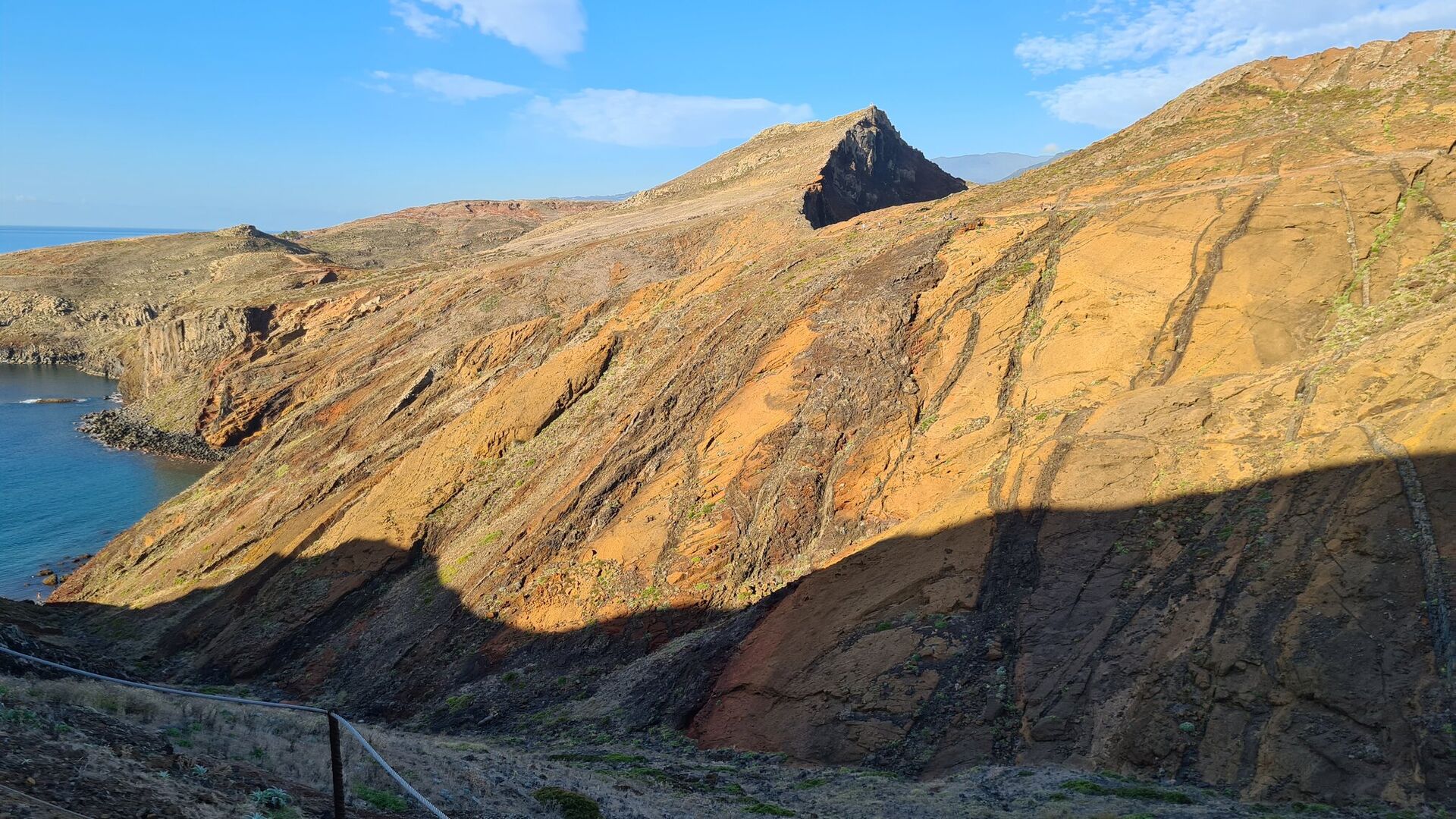 Geologically, the Ponta do Furado region is an integral part of Madeira’s volcanic framework. The coastal cliffs consist predominantly of basaltic rocks formed during successive submarine and subaerial volcanic phases. Exposed lava sequences, layered volcanic deposits, and intrusive structures such as dykes are clearly visible, reflecting former magma pathways within the volcanic edifice.