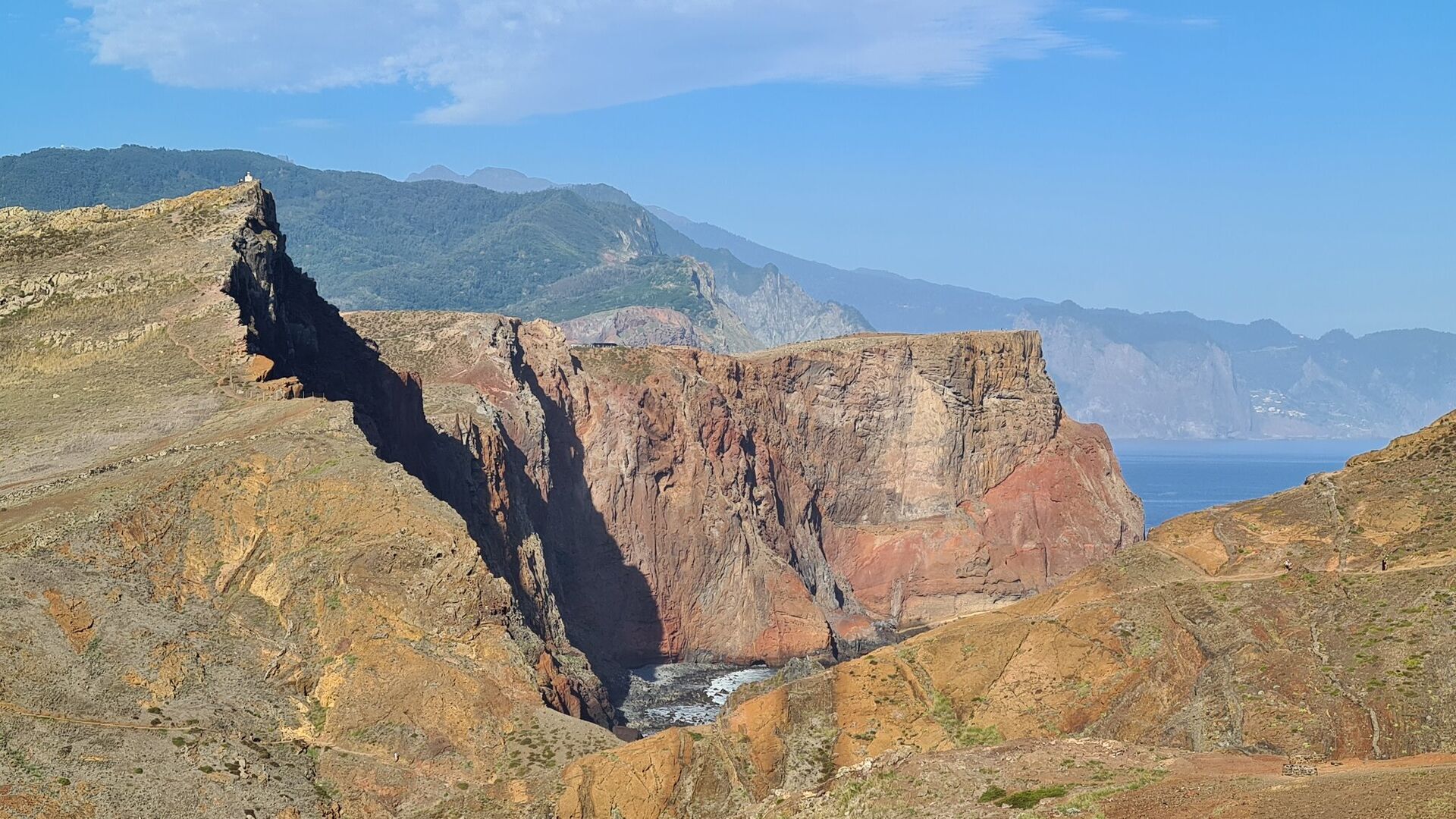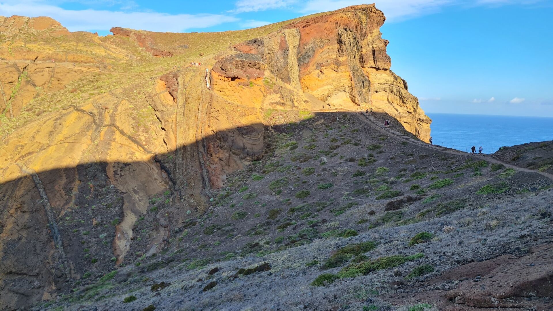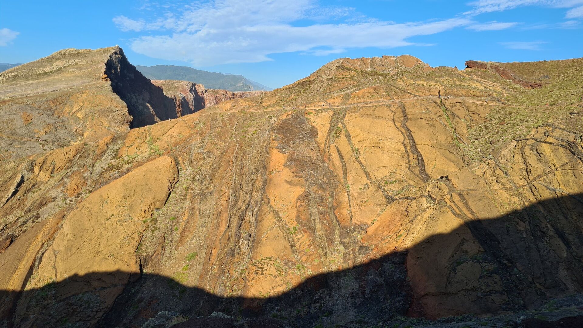 Geologically, the Ponta do Furado region is an integral part of Madeira’s volcanic framework. The coastal cliffs consist predominantly of basaltic rocks formed during successive submarine and subaerial volcanic phases. Exposed lava sequences, layered volcanic deposits, and intrusive structures such as dykes are clearly visible, reflecting former magma pathways within the volcanic edifice.