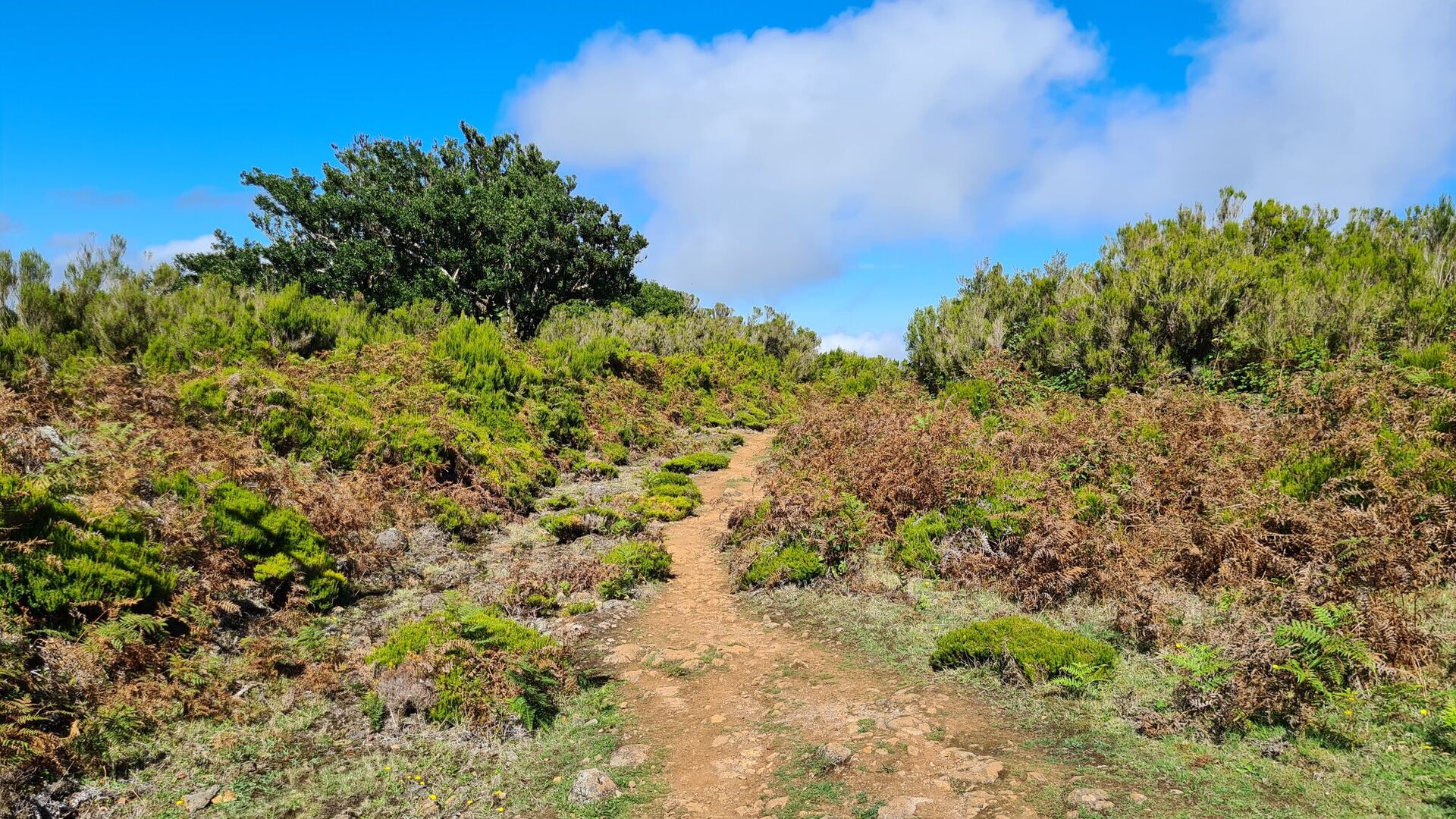 Persistent cloud immersion and high relative humidity create a stable microclimate that favors bryophytes and lichens, resulting in extensive biological surface coverage on tree trunks, rocks, and levada walls. This contributes to both high biodiversity and a distinctive visual character.