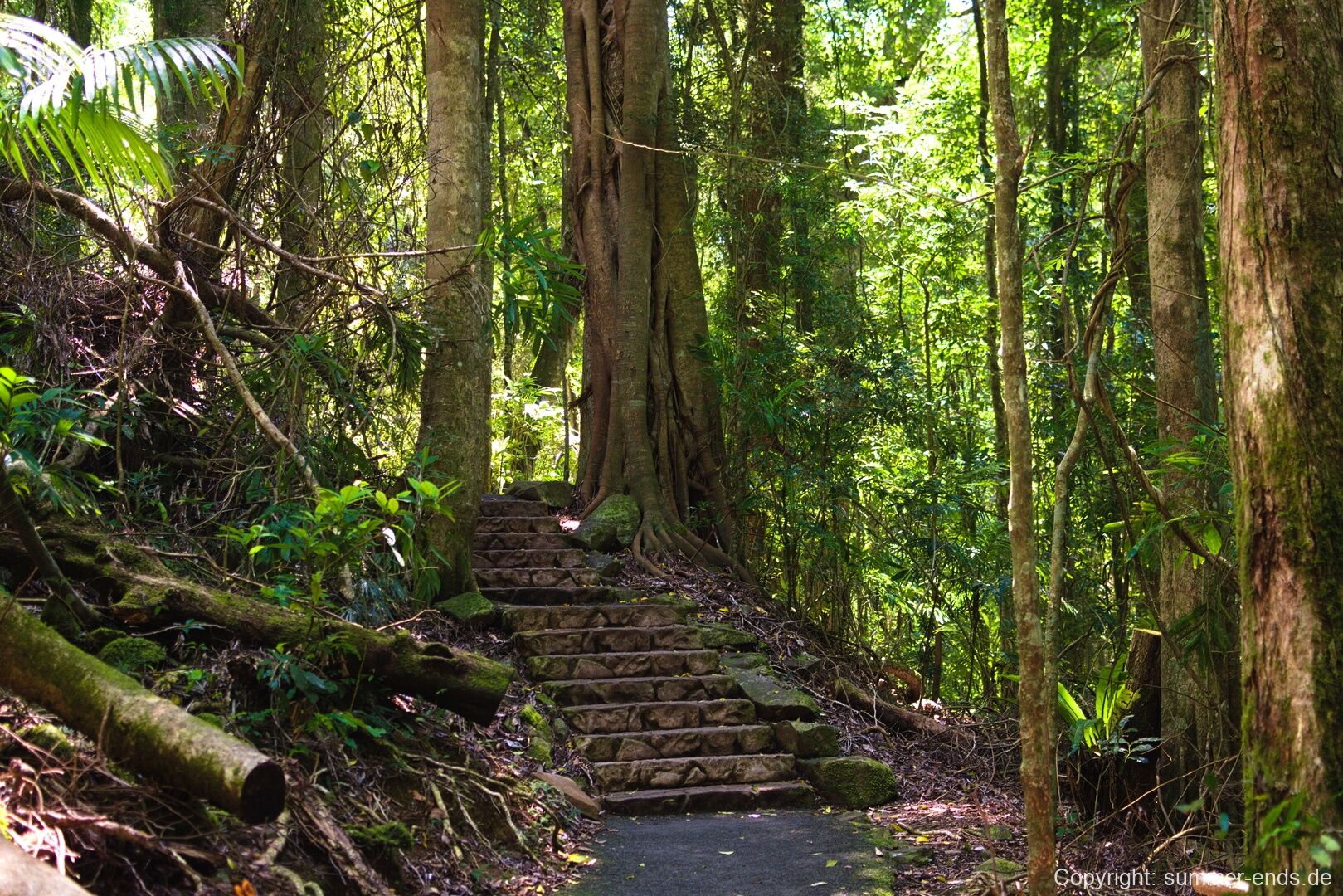 Basaltic bedrock dominates much of the park, derived from successive lava flows that once extended across a broad volcanic dome. Over millions of years, fluvial erosion, mass-movement processes, and chemical weathering have dissected the volcanic surface, producing steep valleys and sharp topographic relief. In some areas, older sedimentary rocks underlying the volcanic sequences are exposed, adding geological complexity. The basalt-derived soils are relatively fertile and, combined with high rainfall, support dense rainforest vegetation and high biomass ecosystems.