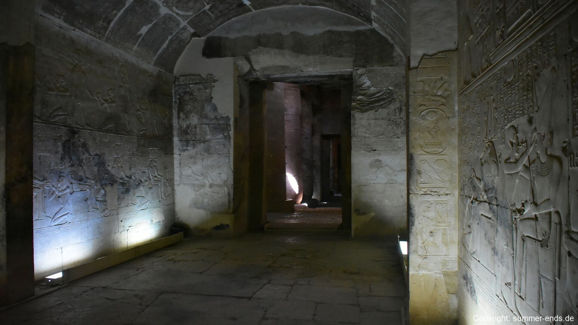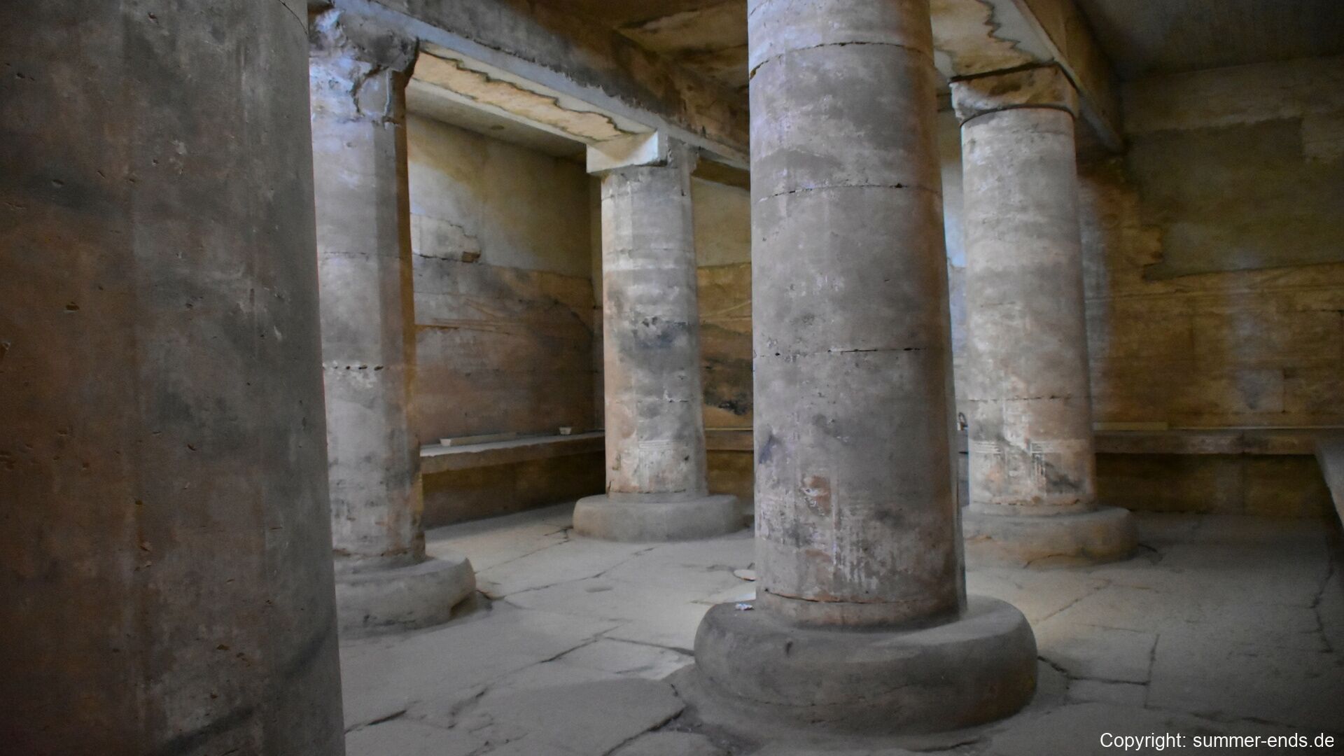 Behind the main temple lies the Osireion, a mysterious and massive subterranean structure built with megalithic granite and sandstone blocks. Surrounded by a trench that once held water, the Osireion may have served as a symbolic tomb of Osiris and possibly as a cenotaph for Seti I. Its architecture differs markedly from typical Egyptian temples and evokes a primordial or funerary atmosphere.