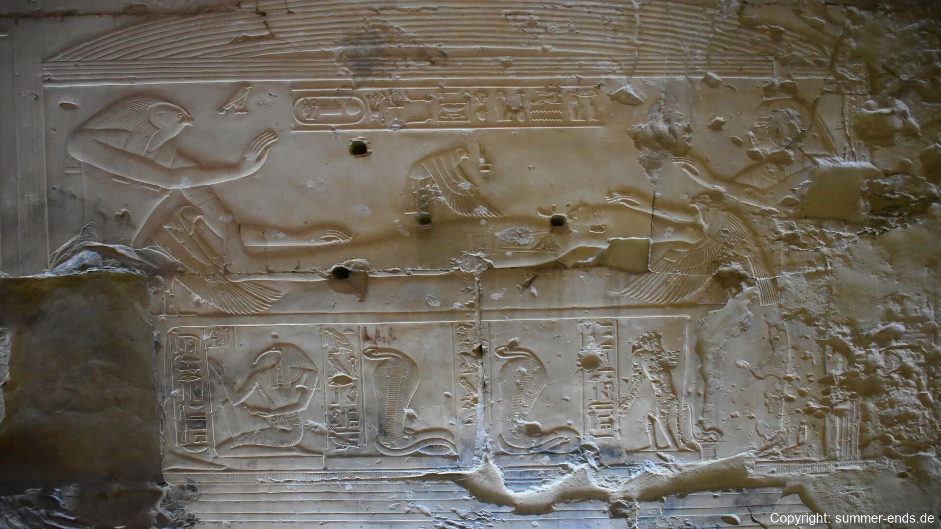 The Temple of Seti I is the crown jewel of Abydos. It features seven sanctuaries aligned along a single axis, dedicated to Osiris, Isis, Horus, Amun, Ptah, Re-Horakhty, and Seti himself. The interior reliefs are among the finest in Egypt, showcasing delicate detail, vibrant color, and religious symbolism. The temple’s first hypostyle hall leads into a series of chapels, corridors, and side rooms filled with inscriptions and ritual scenes.
