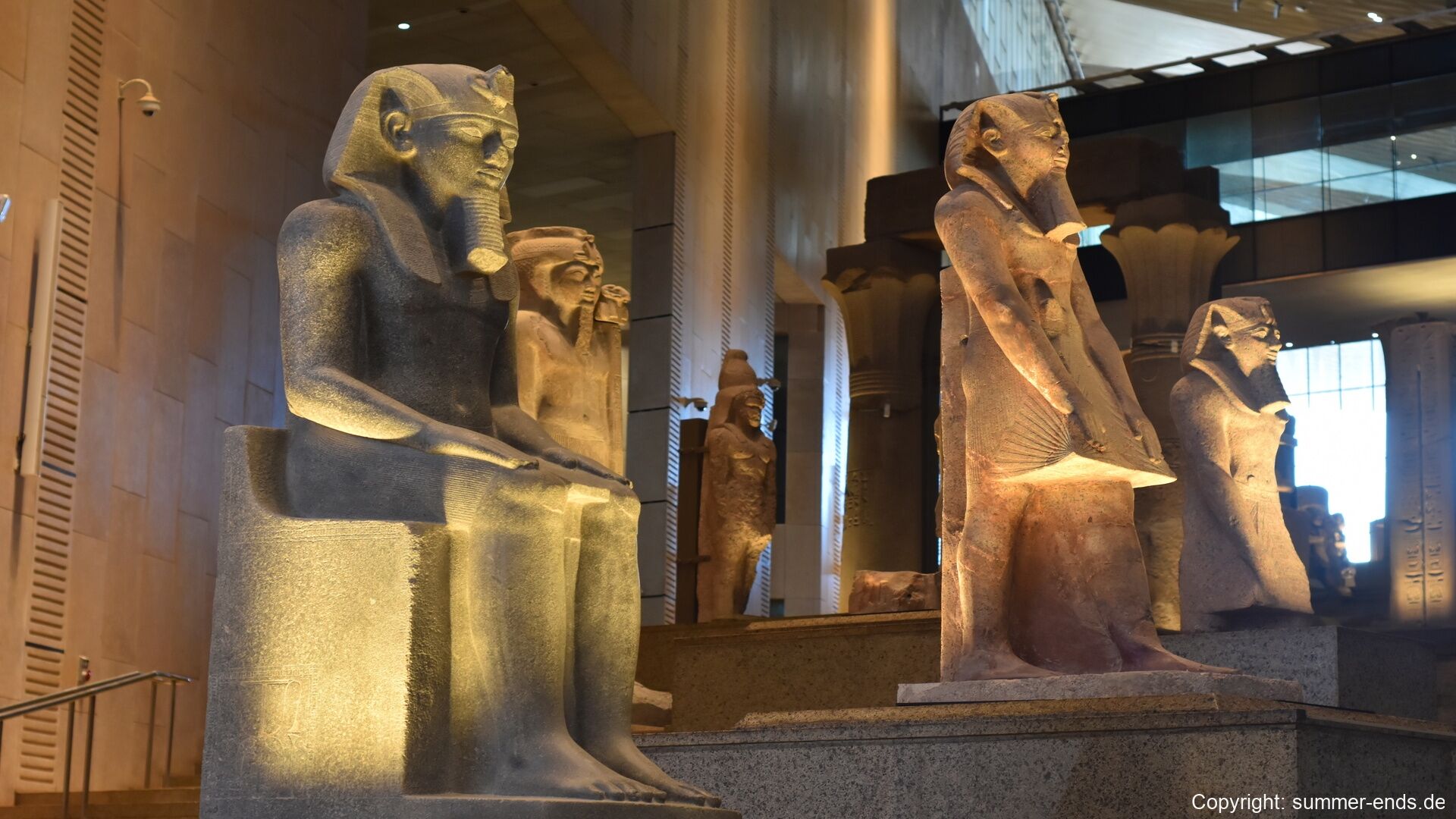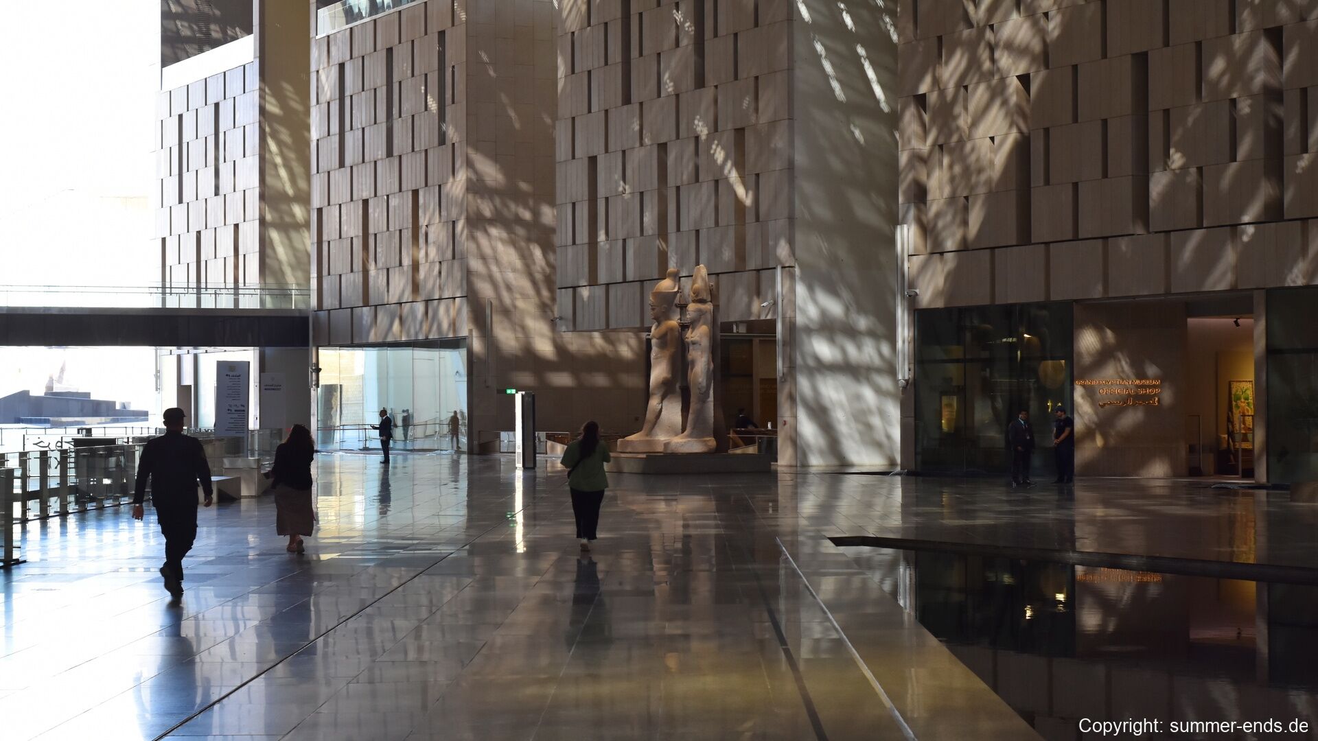 Another major feature is the museum’s grand atrium, which houses a colossal 11-meter-tall statue of Ramses II. The space is designed to evoke a sense of timeless grandeur while offering panoramic views of the pyramids through massive glass facades. Additional galleries explore topics such as daily life in ancient Egypt, writing systems, royal dynasties, funerary beliefs, and artistic traditions, all contextualized with multimedia displays and archaeological data.