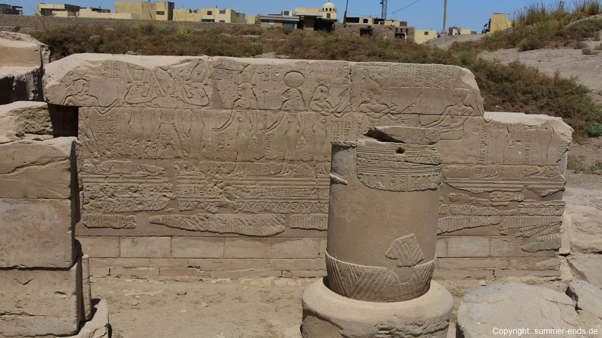 Its construction materials consist primarily of sandstone from Gebel el-Silsila, a quarry site located upstream along the Nile. This Nubian sandstone is fine-grained and well-suited to large-scale carvings and inscriptions. The stone was transported by boat and assembled with remarkable precision, using interlocking joints and architectural techniques that have allowed the structure to endure for over three millennia.