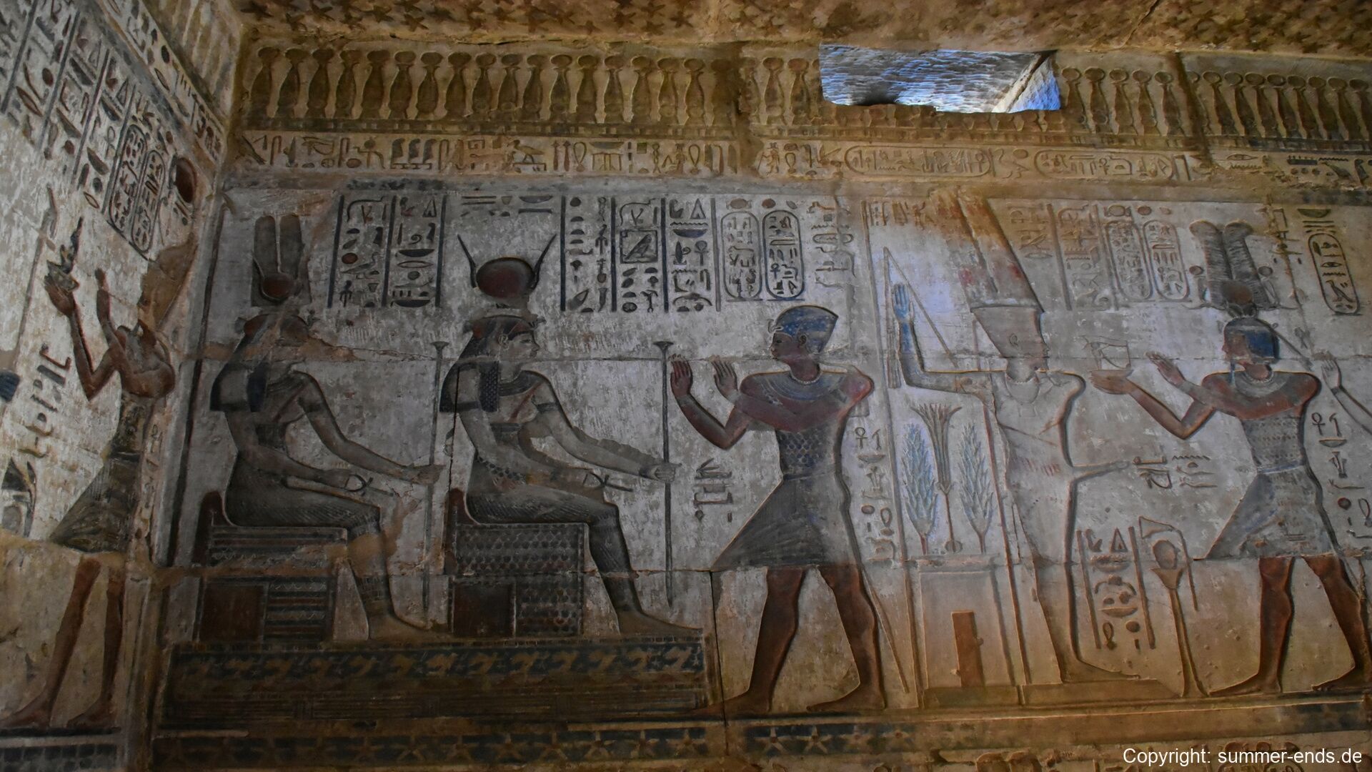 In the Valley of the Queens, the most significant site is the tomb of Nefertari (QV66), often described as the most beautiful tomb in Egypt. Its walls are painted with full-color images of the queen interacting with gods such as Isis and Hathor, and the ceiling depicts a starry sky. Due to the tomb’s fragility, access is restricted and requires a special ticket.