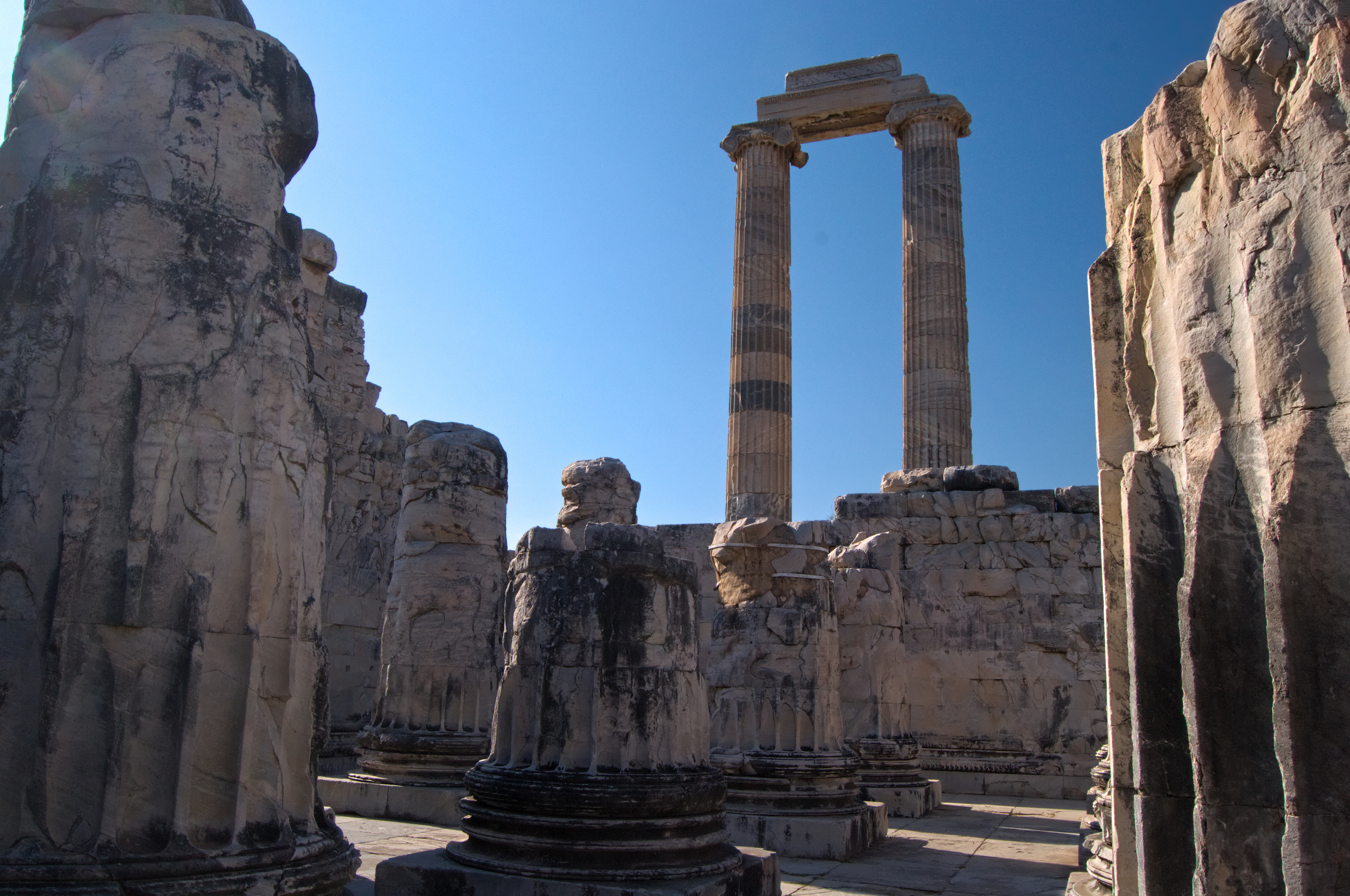 Over time, with the spread of Christianity and the decline of the ancient world, the sanctuary of Didyma lost its importance, and the temple eventually fell into ruin. Much of the marble from the temple was repurposed in the construction of other buildings, leaving behind a few standing columns as a reminder of its former grandeur.