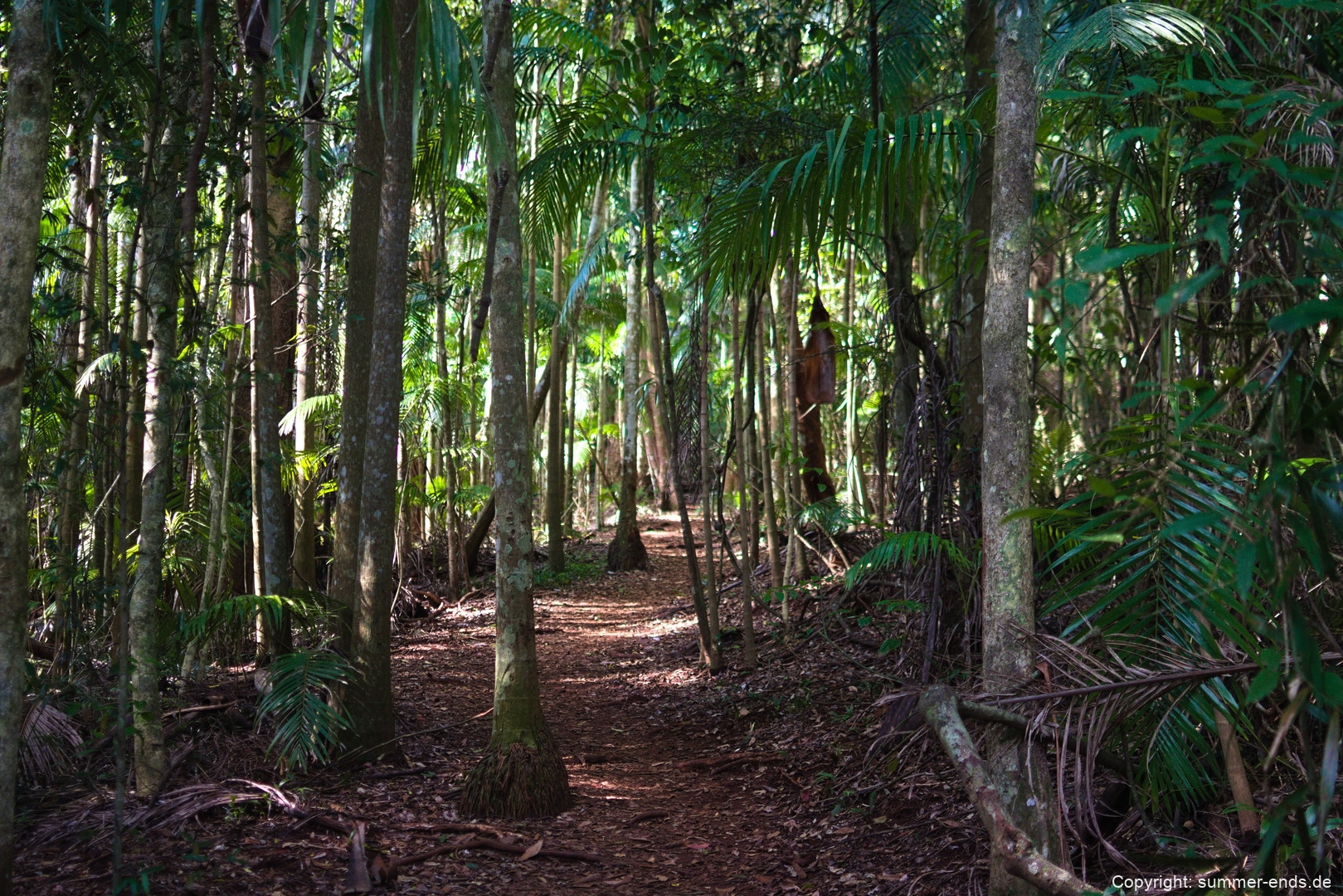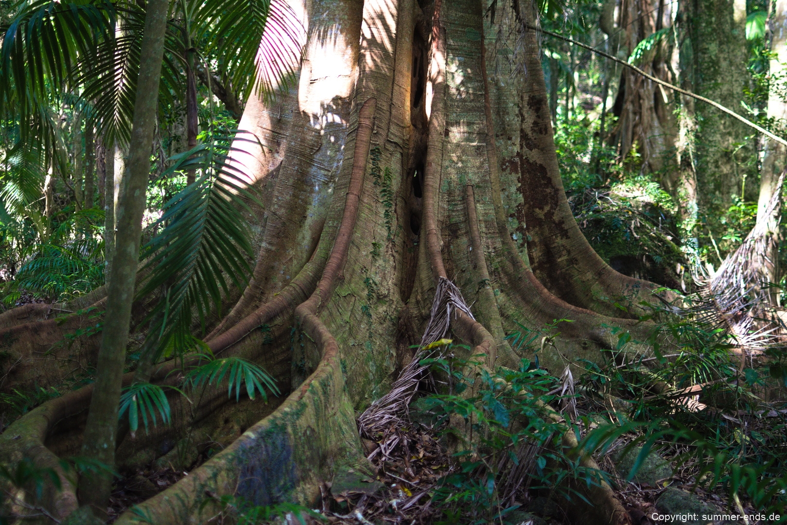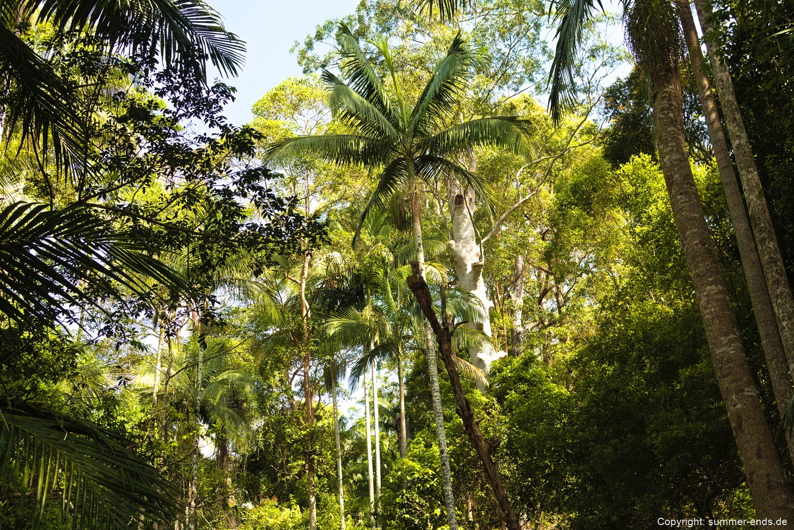 The most famous trail is the Witches Falls Circuit, Queensland’s oldest national park walking trail. This 3.1 km loop descends through dense rainforest filled with strangler figs and cycads before arriving at the scenic Witches Falls.