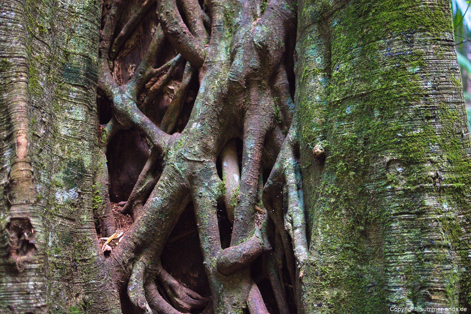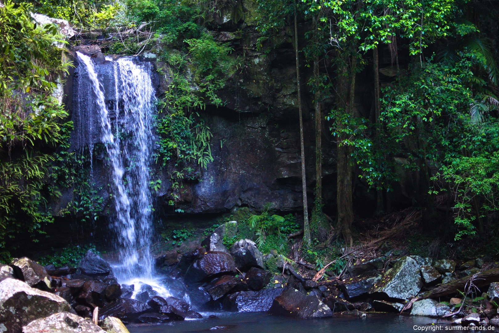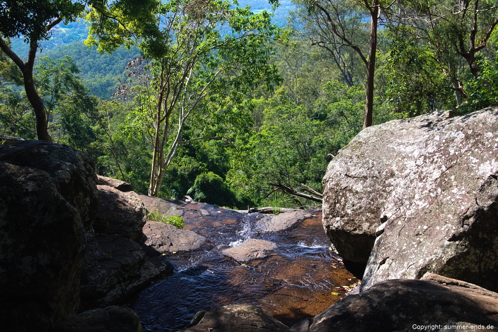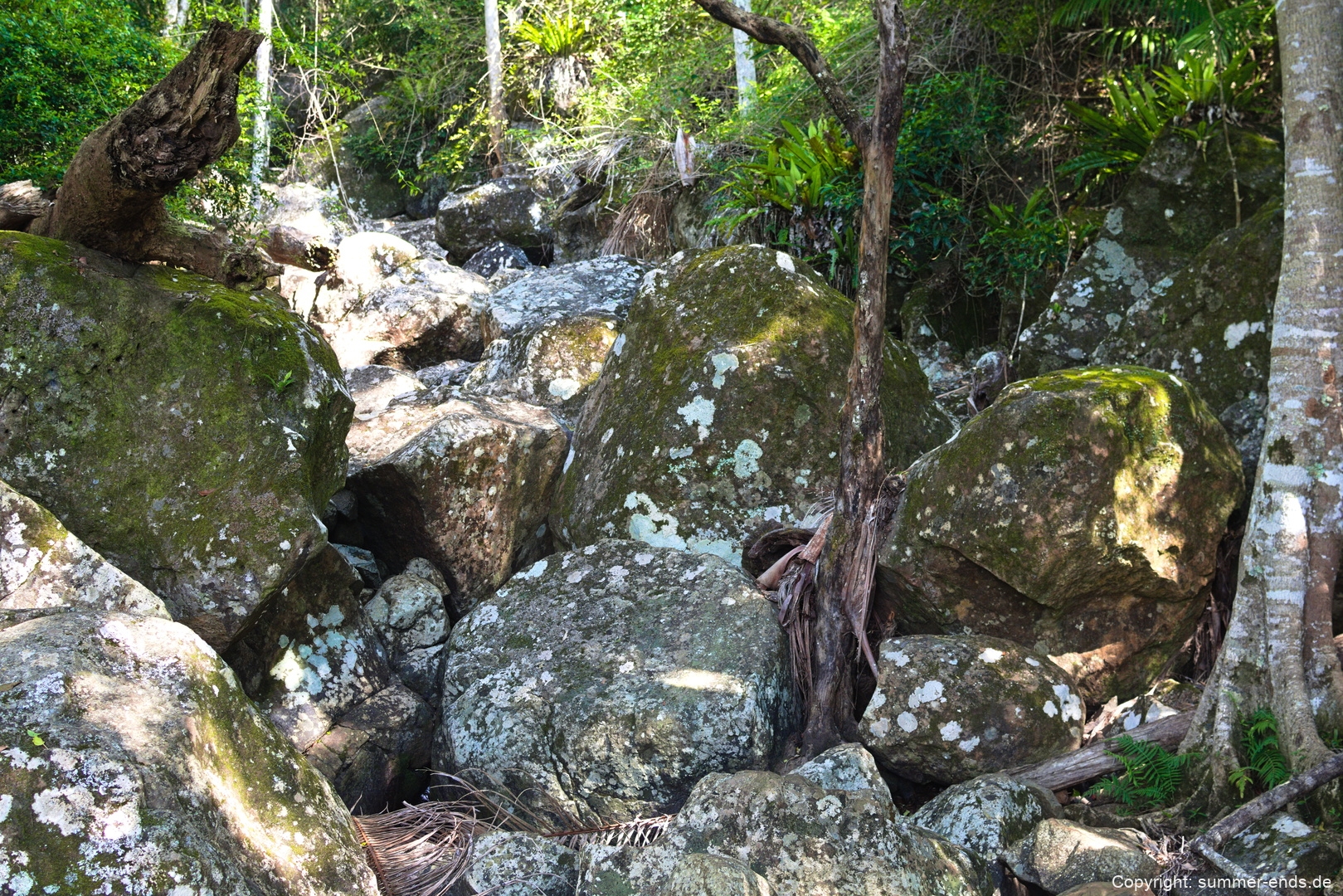 The most famous trail is the Witches Falls Circuit, Queensland’s oldest national park walking trail. This 3.1 km loop descends through dense rainforest filled with strangler figs and cycads before arriving at the scenic Witches Falls.